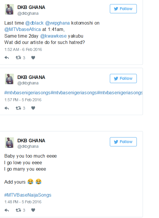 It will be recalled that founder of The Last Two Music Group, Edward Nana Poku, popularly known as Da’ Hammer stated on Happy FM’s Showbiz Xtra that music in Ghana is becoming one-way because DSTV plays, majority are Nigerian.